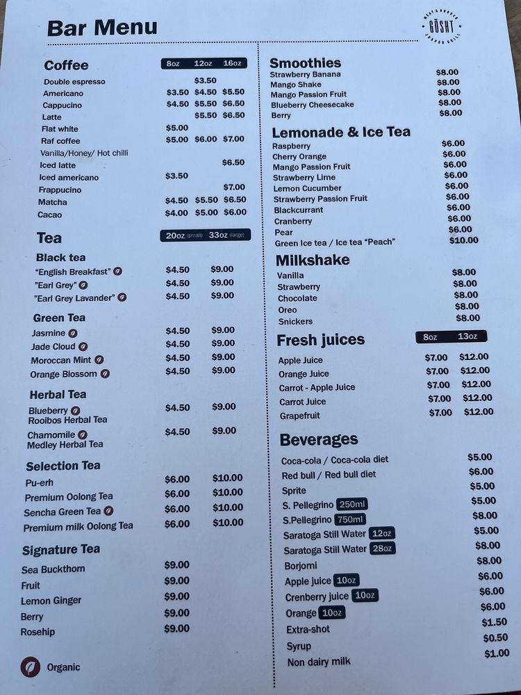 Located in Brooklyn, NY, GOSHT is a classy upscale restaurant offering a diverse menu of steaks, burgers, and halal options. Known for its exceptional customer service, GOSHT provides a warm and welcoming dining experience. Customers rave about the deliciously-prepared steaks, juicy burgers, and exquisite bone marrow. The restaurant offers a range of amenities including outdoor seating, valet parking, and free Wi-Fi. With options for private dining and catering, GOSHT is perfect for groups and families alike. The attentive staff and clean, new ambiance add to the overall dining experience. Whether you're craving a juicy steak or a refreshing salad, GOSHT has something for everyone. Experience the joy of dining at GOSHT for a memorable culinary journey.